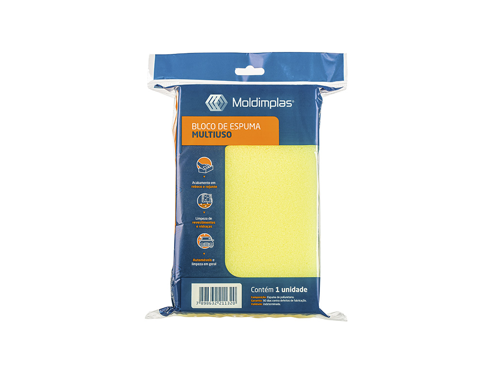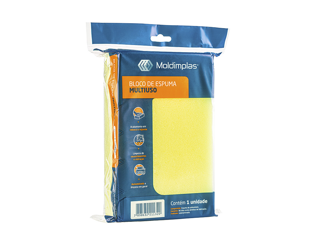 O bloco de espuma é feito com material resistente, ideal para limpeza e acabamento. Bastante utilizado em revestimentos cerâmicos, retira os excessos de massa após o rejuntamento.
