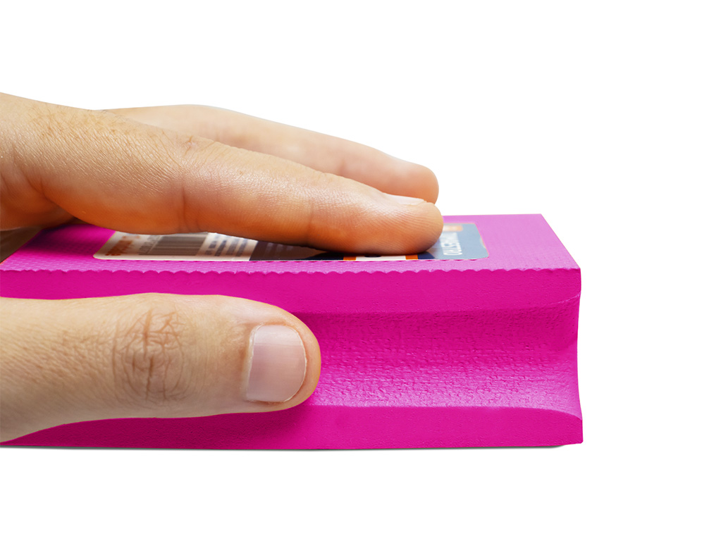 Indicada para suavização de bordas de porcelanato após corte em riscadeira manual. Esponja com diamantes semi-flexíveis e corpo em EVA, tem excelente adaptação à mão do usuário.