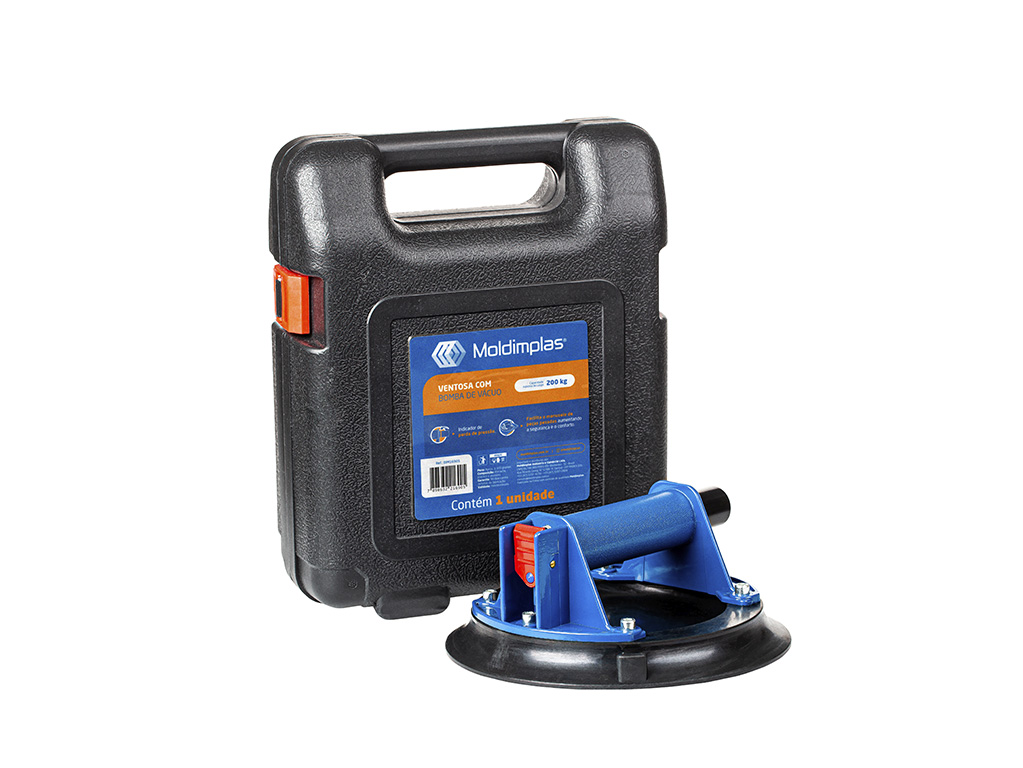 A Ventosa com Bomba a Vácuo da Moldimplas é ideal para manipulação de porcelanatos de grandes formatos e peso, além de adaptar-se facilmente as superfícies lisas, rugosas, nervuradas ou com texturas variadas.